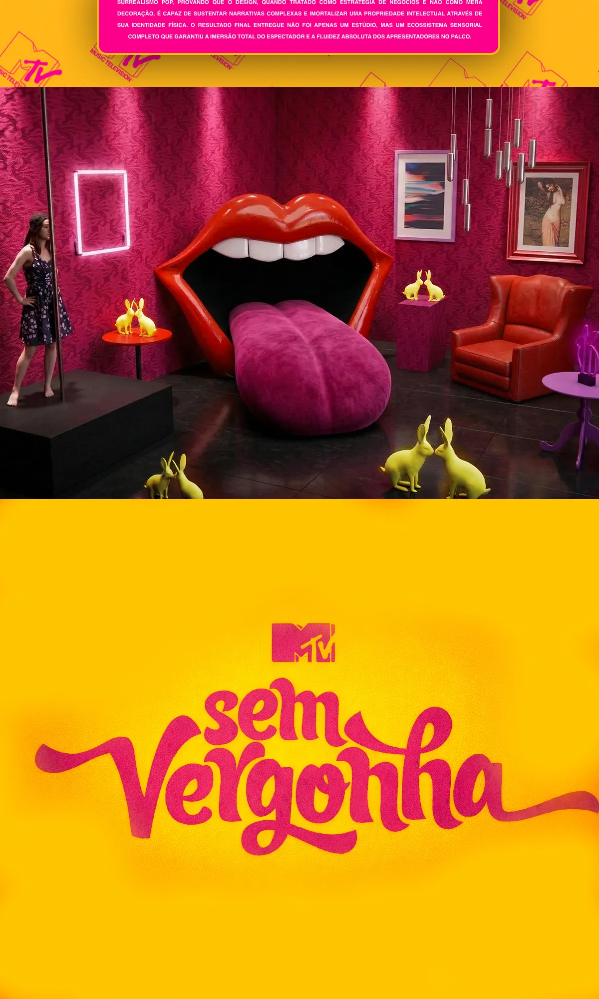 A cenografia do programa MTV Sem Vergonha foi projetada para criar um ambiente imersivo e envolvente, que transportasse o público para um universo de sensualidade e liberdade. A escolha de elementos como lustres em formato de dildos e coelhos, além de causar impacto visual, contribuiu para a construção de uma atmosfera lúdica e provocante.