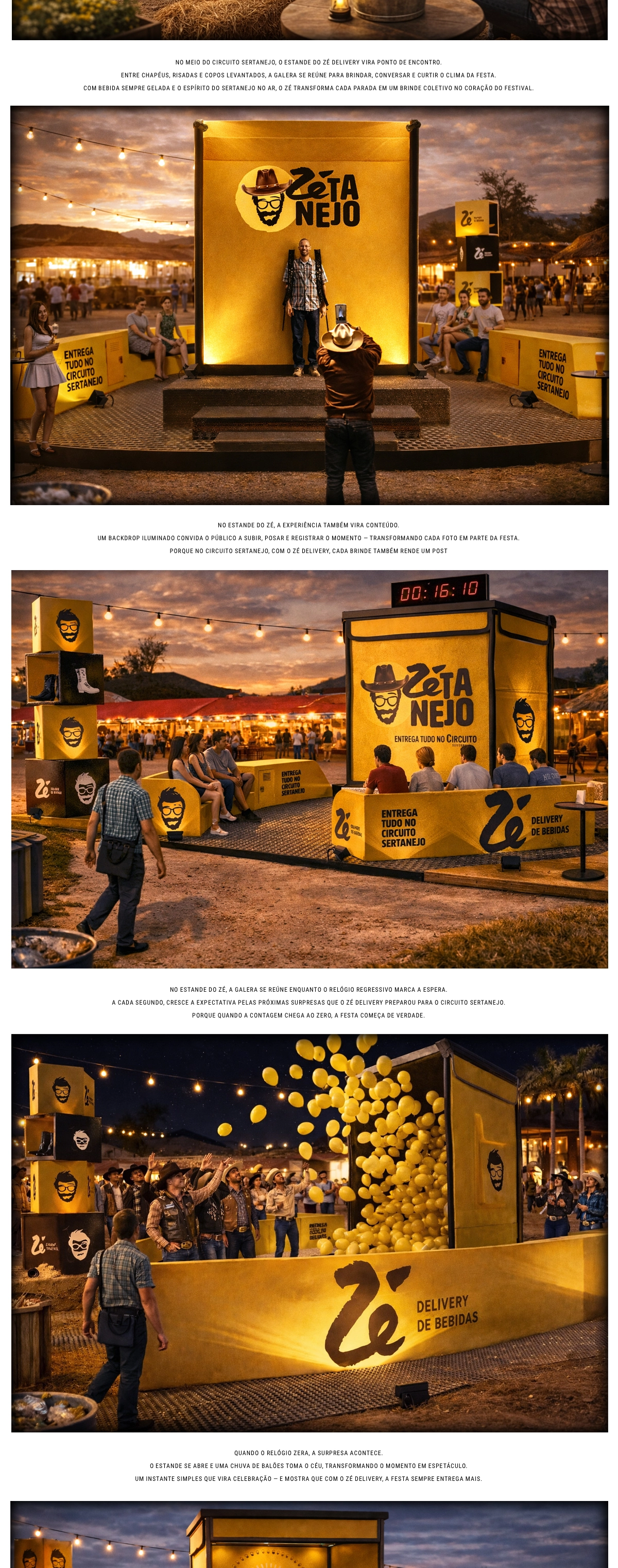 O Zé Delivery, em parceria com o Circuito Sertanejo, entregou uma experiência única para os fãs da música sertaneja. A marca criou um espaço imersivo e instagramável, com um palco em formato de bag — ícone do aplicativo — que se tornou ponto de encontro para quem queria curtir boa música e o clima do festival.