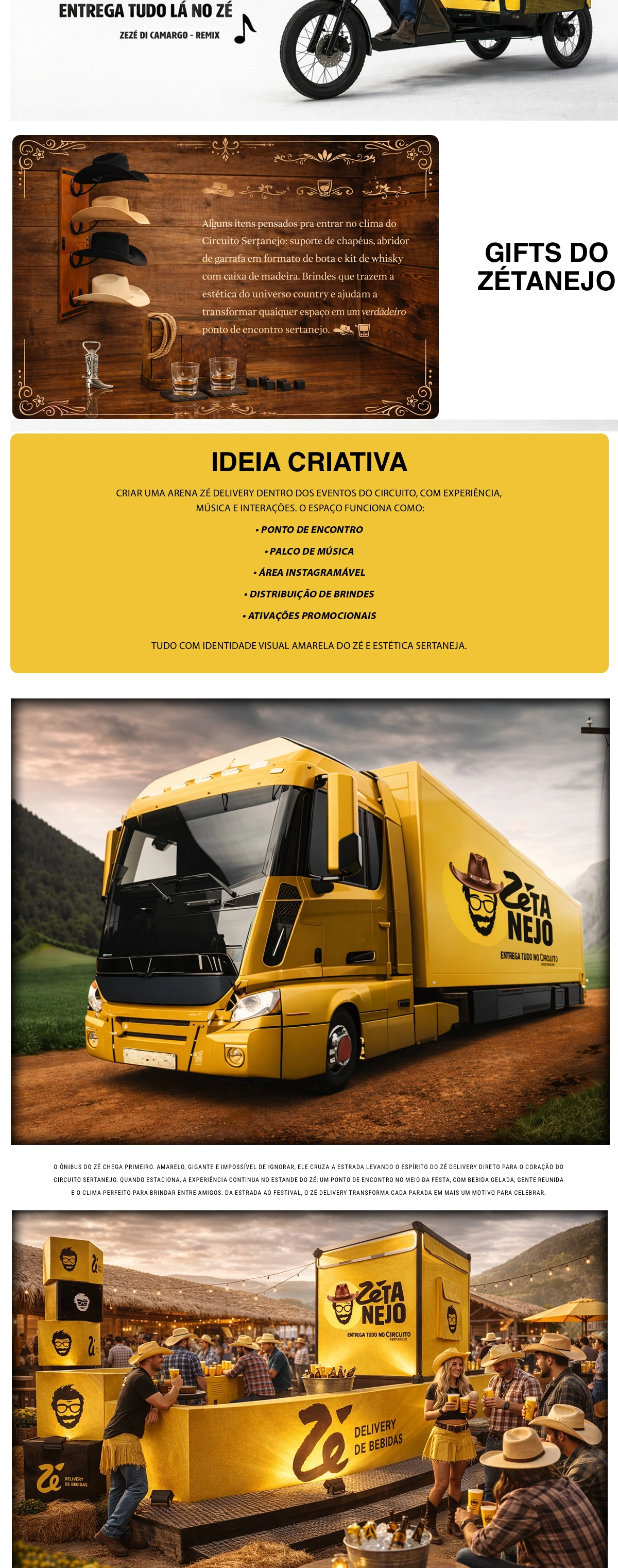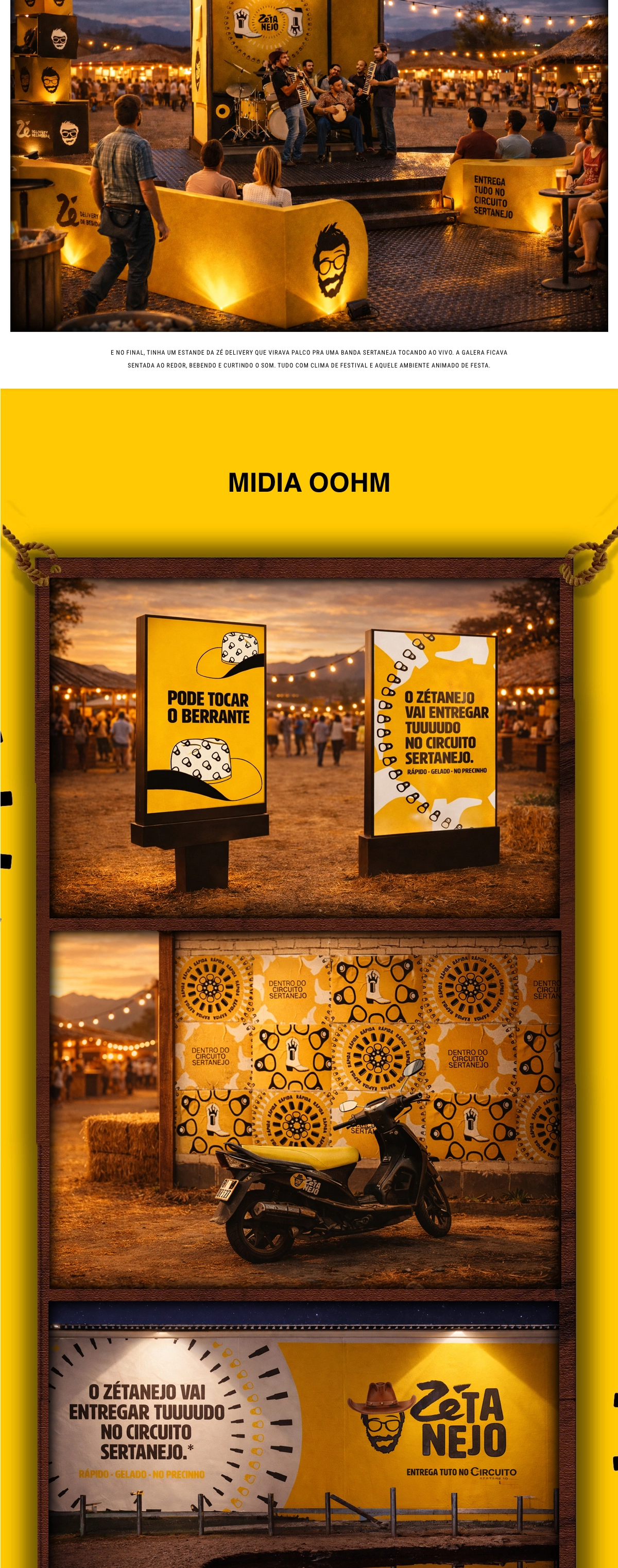 O projeto para Zé Delivery foi concebido para integrar a marca de forma orgânica à experiência do público, transformando presença em conexão real. A partir de uma cenografia icônica e um palco proprietário, a ativação levou o universo do app para dentro do evento, criando um ambiente imersivo, dinâmico e altamente compartilhável. Mais do que visibilidade, o projeto constrói relevância ao posicionar a marca como parte ativa do entretenimento e da cultura, gerando engajamento e vínculo emocional com o público.